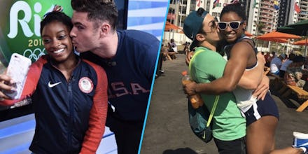 Simone Biles appears to be caught in a delightful (and jocular) love triangle between actor/sentient six-pack Zac Efron and fellow Olympic gymnast Arthur Nory Mariano.