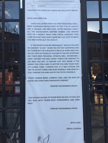 The letter was filled with sentiments of mercy and forgiveness for the robber, but more importantly, it finished off with two powerful quotations from Prophet Muhammad.