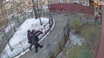 Lawyers for the Charles family and the city both believe the video exonerates their side, according to the Daily News. But the footage seems pretty straightforward: Officers Rivera and Kevin Franco were clearly shooting at Charles as he was running away. The teen can be seen limping after being hit once in the buttocks. When Charles reaches the door of his Brownsville Houses apartment building, he raises his hands above his head to surrender. Rivera shoots him two more times anyway. No BB gun is visible in the video when the last two shots hit the teen.