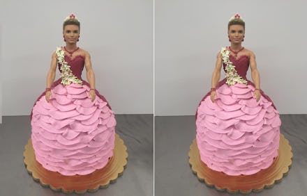 The custom cake, created by the team at Freeport Bakery, featured Ken in a ruffled pink dress crafted from frosting. The doll also sported a coordinating flower sash, big jewelry and a crown. Marlene Goetzeler, co-owner of bakery, posted an image of the cake to Facebook, on Aug. 13 with the caption, "Ken's looking good."