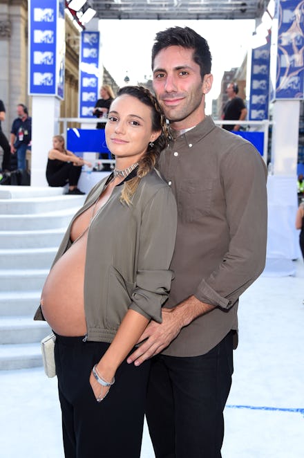 Nev Schulman, the host of MTV's TV show Catfish, showed up with his pregnant fiancée, Laura Perlongo, a woman who apparently wanted the entire world to know that yes, she is pregnant, because to the 2016 VMAs, she didn't wear a shirt.