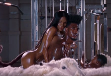 "He was just like, 'I'm going to put you in this cat face. It's going to be chic,'" Taylor told Vogue following Sunday night's premiere of the Tidal exclusive music video. "I thought, 'This crazy mother-effer. He's got 15 sheep in this gym right now, with poop all over the place.' It's crazy the thing that happens behind the scenes; my wig almost flew off."