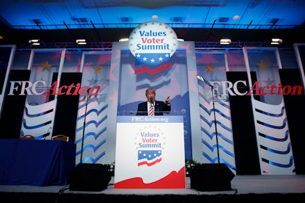 WASHINGTON — If Donald Trump didn't completely bring down the house in his address to the Values Voter Summit on Friday, he didn't have the door to the house slammed in his face, either.