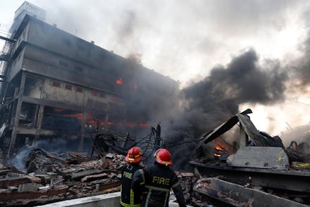 More than 20 teams of firefighters were on the scene at the Tompaco Foils Ltd. building near Dhaka, the country's capital, to quells the flames, according to Reuters, which also caused a partial collapse.