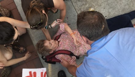 A 69-year-old protester got punched in the face at a Trump rally