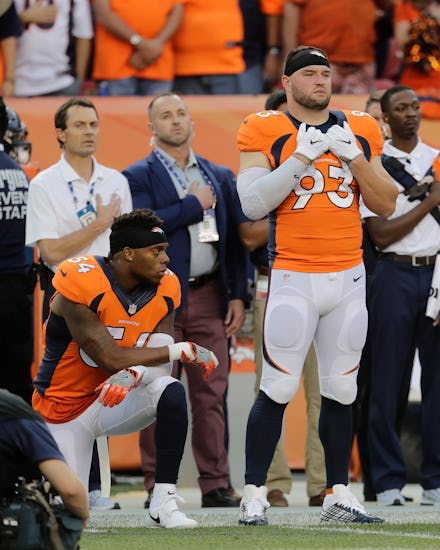 Most of the players, like Kaepernick and Marshall, have kneeled while the anthem played. Others have stayed standing with their fists raised in a "black power" salute. Others still have made the less ideologically coherent gesture of linking arms during the song.