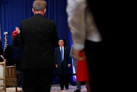 The admission — previously made in a campaign statement, but not by the candidate himself — came at the tail end of a lengthy series of endorsements from veterans who spoke at Trump's new hotel in Washington, D.C.