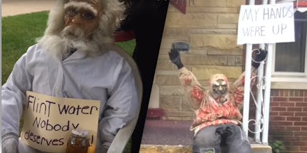 Detroit grandma gets very real with Flint crisis, police shooting-themed Halloween decor