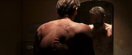The short clip opens with shots of Wolverine (once again played by Hugh Jackman) looking introspective as Johnny Cash's "Hurt" plays in the background. It's a struggle for him to so much as put a shirt on.