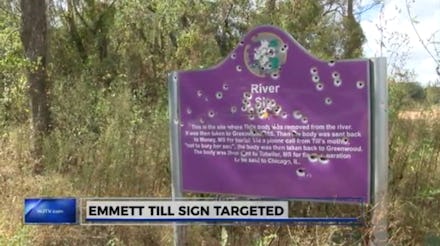 Sign marking site of civil rights icon Emmett Till's death shot 40 times