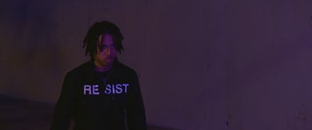 In the video, which debuted exclusively on Tidal, Mensa dons a black jacket with the word "RESIST" across its chest and walks through a deserted alley where he's confronted by police.