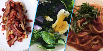 Here's a spinach salad with purple potatoes and a poached egg, a meal Chef Falkner ate after a training run earlier this year:
