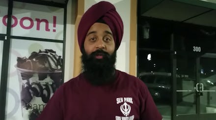 Balmeet Singh was on the phone outside of a pizza restaurant at about 7:40 PM on Sept. 30, when the man, David Hook, approached him. According to a video Singh posted on Oct. 3, Hook, whom Singh identified as white, shouted, "So you're going to blow up this country. You're trying to blow up this country?" before hurling his drink at Singh's face.