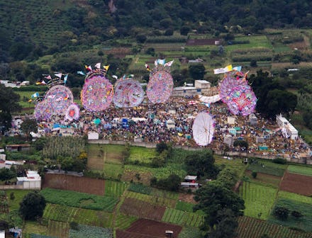 Due to their massive size, the barilletes gigantes don't fly. Instead, the vibrant masterpieces stand upright on the ground.