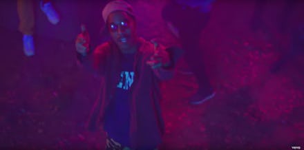 A strong contingent of that family appears right beside him in the artist's latest visual for one of his latest singles, "Surfin'." The video features Cudi and his crew dancing in a neon wonderland. It plays like a who's who in alternative hip-hop. A$AP Rocky, A$AP Nast, Jaden Smith, Willow Smith, King Chip and Hit-Boy are among the faces we can make out through the psychedelic haze.