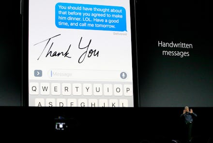 If you're feeling fancy, you can even send drawn out handwriting in iMessage. To do so, simply turn the iPhone sideways (make sure the screen lock is off) to reveal a blank white slate. You can write your own custom text or use Apple's custom preloaded options.