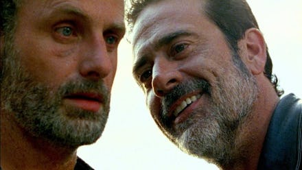 But he isn't just like Trump in his lack of humility. Negan's a demagogue, offering members of the Saviors the chance to move up in his inner circle with a points system that's like a post-apocalyptic rundown of The Apprentice. He promises his lackeys that they'll live like royalty. His fixation on Daryl in particular is because he thinks he'd be a good henchman for him. Negan's anger towards him centers on the fact that Daryl refuses to blindly follow him and rid himself of his identity (remember, everyone in the Saviors is "Negan" by extension).