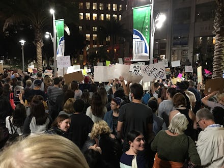 The protest started less than two miles from Pulse nightclub, the site of the deadliest mass shooting in modern U.S. history. At least 50 people were killed and 53 were wounded at the gay nightclub. The shooting weighed heavy on the minds of people at Friday's rally, several of whom spoke to Mic about their anger with Trump and Vice President-elect Mike Pence's looming LGBTQ agenda.