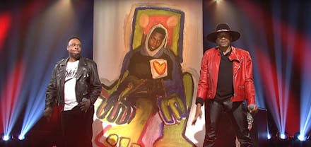 On Saturday, A Tribe Called Quest took the Saturday Night Live stage for the first time in their 26-year history to deliver one of their most devastating and necessary messages they ever have. "Stand up, touch somebody next to you. Everybody in here one fist up in the air," Q-Tip said, waiting for the crowd to comply, before confirming the significance of this gesture: "We are all one. We are the people."