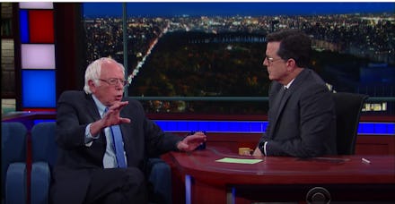 As much as some Americans would like to see Bernie Sanders as our president-elect — and no, it's not possible — we're going to have to deal with Donald Trump for at least four years. Speaking with Stephen Colbert on The Late Show, Sanders offered his assessment on what the Democratic party needs to do following its surprise loss to Trump, who will also have GOP control of the Senate and the House.