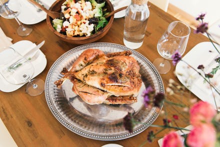 Green bean casserole and creamed spinach certainly weren't served at the first Thanksgiving (though stuffed birds do date back to Ancient Roman times and could have been served in America's early days). Because the first Thanksgiving was in Massachusetts, seafood like oysters and oyster stuffing were likely to have had a prominent place on the pilgrims' table, though the tradition of eating shellfish on Thanksgiving hasn't really stuck around.