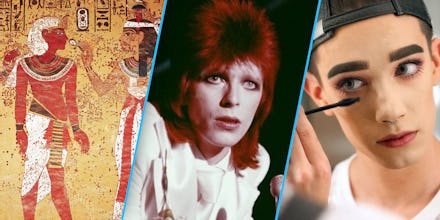 A long time coming: Makeup was documented in ancient Egypt. We see examples of this on many artifacts from the time, with both men and women wearing copious amounts of makeup, with particular attention paid to expressive eyeliner.