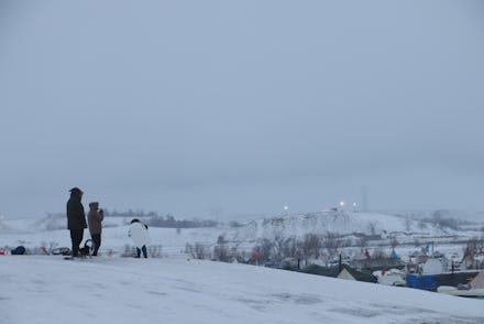 Standing Rock is frozen over, now that the harsh North Dakota winter brought fresh snow to the reservation last week. The hills are crusted with ice, and Dzieglewicz took the kids out to the top of Facebook Hill — the one spot on camp where there's good cell phone reception — to go sledding.