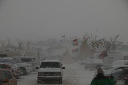 Winter on the North Dakota plains is coming in with full force. The Lakota Sioux don't typically reside at Standing Rock year-round, instead spending colder months in other treaty lands like South Dakota's black hills. But the police and the pipeline company are still here — and so the Sioux are remaining.