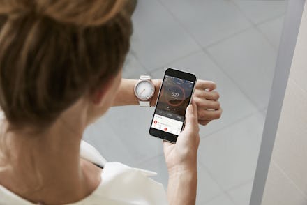 The Phase can track your steps, distance traveled and calories burned. It also lights up and vibrates for incoming text and call notifications. With no touch display, the Phase indicates who's trying to reach you through the minute and hour hands, which point to the hour numbers you've assigned to your contacts. So if your buddy Alex (aka 4 o'clock) texts to say she'll meet you at the burrito place, the watch hands will move to the 4 o'clock position when the message comes in.