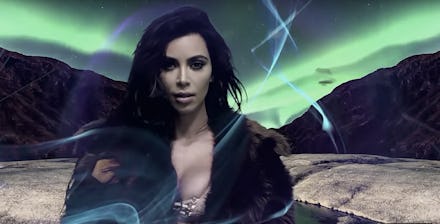 Do we know exactly where she is in this video? No. Do we know why she is there, in this unknown landscape? Not a clue. But regardless, here is Kim Kardashian West, rising from the ashes, draped in a fur coat and lacy lingerie while posing in front of a display of aurora borealis — which is pretty much exactly how we'd expect her to look at this point.