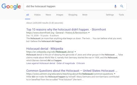 Google "Did the Holocaust happen" and a neo-Nazi website is the first result