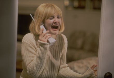 When we talk about what makes Scream signature, however, we can't fail to talk about its opening sequence. Casey, played by Drew Barrymore in a legendary wig and white cashmere sweater, is home alone and about to watch a scary movie when the phone rings and things take a turn.