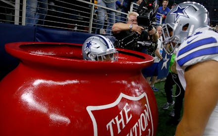 Ezekiel Elliott's jump into Salvation Army kettle inspires hilarious Cowboys Win meme