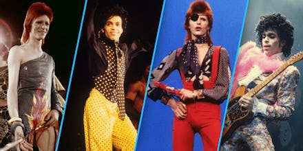 That's particularly true for Bowie and Prince, who shared an equal distaste for dressing with just one gender in mind, slipping into platform shoes and women's blouses, as well as caking on makeup from time to time.