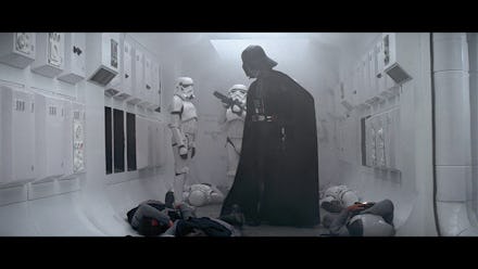 So what's the problem here? Let's go back to Rogue One's ending, and the scene in which Vader brutally massacres a bunch of Rebel soldiers. He was actually very, very close to getting the plans to the Death Star, but the Rebels stalled him long enough to get the plans safely aboard Tantive IV, which flies away as Vader looks on.