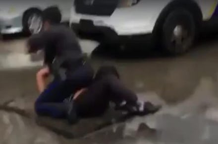 The camera then shows the female officer judo-throwing the teen to the ground before mounting and punching her in the face.
