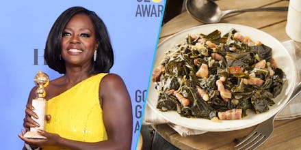 Last night, during the Golden Globes, actress Viola Davis let viewers in on the secret ingredients she uses to make her collard greens. "I use smoked turkey, chicken broth, and my special barbecue sauce," Davis said while recounting an anecdote about Meryl Streep telling her that no collards recipe tastes good unless it has ham hocks.