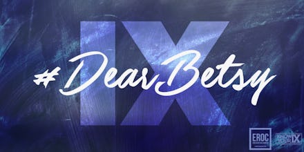 In Partnership with Know Your IX, End Rape on Campus launched the multimedia campaign #DearBetsy imploring DeVos to promise to protect and enforce Title IX rights for all students regardless of gender identity, gender expression and sexual orientation, Sofie Karasek, director of education for End Rape on Campus, said in the YouTube video. The campaign also asks DeVos to keep public all lists of educational institutions under investigation for Title IX violations and to uphold the Title IX rights for sexual violence and harassment.