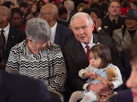 Sen. Jeff Sessions (R-Ala.) was holding his Asian granddaughter while waiting to testify for his confirmation hearing as attorney general on Tuesday.