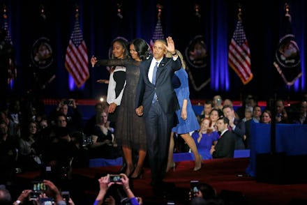 He also addressed his two daughters. "Malia and Sasha, under the strangest of circumstances, you have become two amazing young women," Obama said. "You are smart and you are beautiful but more importantly, you are kind and you are thoughtful — and you are full of passion. And bore the burden of years in the spotlight so easily."