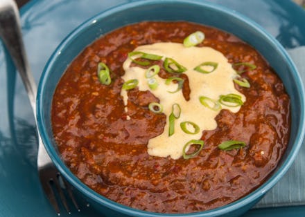 Fieri mentioned this chili is perfect for the Super Bowl because not only does the "rich and flavorful" pot feed a crowd, but it also pairs well with beer. He recommends setting up a DIY chili-toppings bar (shredded cheese, sour cream, tortilla chips — whatever!), so everyone can customize their own bowls .