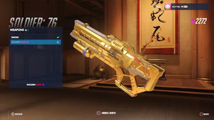 To get a golden weapon for one of your characters in Overwatch, you'll have to purchase it from the "hero gallery" menu where you unlock other cosmetic items. Golden weapons are located under the "weapons" category for each hero. Yes, that means you have to purchase golden weapons individually for each hero.