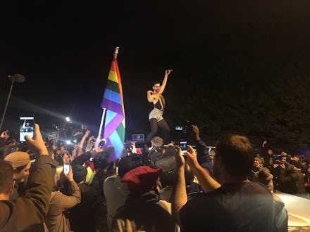 Though the inauguration of President-elect Donald Trump and his vice presidential pick Mike Pence is on Friday, hundreds of protesters got the party started early — throwing a queer dance party outside of Pence's Washington, D.C., home Wednesday evening.