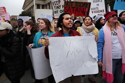 Most were peaceful, with protesters carrying signs ranging from the silly to the crude voicing their displeasure and anger at Trump's impending presidency.