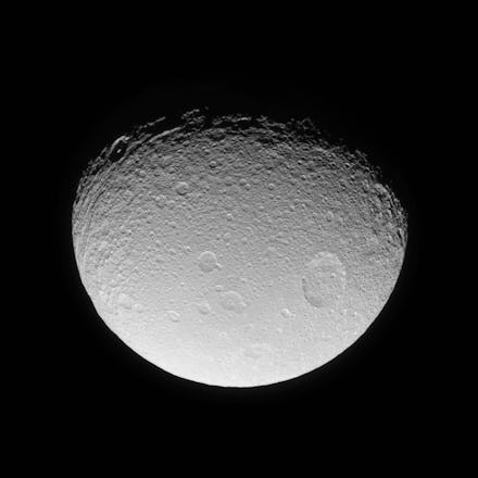 The "Teth Star," as it shall be referred to from this point forward, is Saturn's fifth-largest moon. Its 250-mile-diameter crater covers almost two-fifths of the moon's diameter and was formed by a massive impact at some point in its history. The moon was discovered in 1684 by the Italian astronomer Giavanni Cassini; the mission that bears his name – a joint project of NASA, the European Space Agency and the Italian Space Agency – has approached the moon several times over the course of more than 10 years.