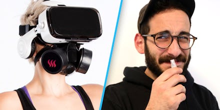 Adult webcam platform CamSoda wants you to strap a gas mask to your virtual reality headset to funnel in a hodgepodge of "sensual aromas" to complement the porn you're watching. The contraption, dubbed OhRoma, includes two canisters with three cartridge slots where consumers can insert the scents of their choosing. There are 30 different combinations, including but not limited to aromas titled "private parts," "body odor," "fragrances," "panties," "aphrodisiacs" and "breath," per the press release.