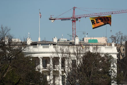 Greenpeace protesters climbed a crane and unfurled a "resist" banner near White House