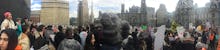 The police presence at the march was light as the protesters took over four lanes of traffic around city hall, their chants echoing off the hotels and office buildings. "We are the popular vote!" they proclaimed, pausing for a "die-in" by the Ritz-Carlton before setting off down John F. Kennedy Boulevard, where a small group of members of New York Communities for Change and Make the Road invaded the lobby of the BNY Mellon building, where Goldman Sachs has an office. Donning swamp creature masks, they challenged the investment bank's connections to the Trump administration.