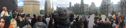 Health care was the theme of the day, but weighing heavily on the crowd were the executive orders Trump signed Wednesday cracking down on immigrants, particularly from majority-Muslim countries, and sanctuary cities — including Philadelphia, whose mayor defiantly declared that it would remain a sanctuary despite the threat of cuts in federal funding. And health care, it turns out, is a lens through which many issues, from clean water (the crowd was dotted with references to the Dakota Access Pipeline) to the economy can be read.