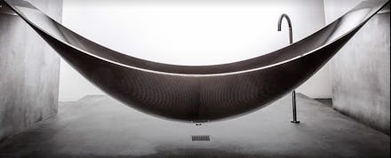 The hammock bathtub, also known as the Vessel, was created by a UK company called SplinterWorks. The tub allows users to bathe and relax in a way they never have before. Layers of carbon fiber give it its hammock shape, while its foam core keeps the bath insulated. It costs around $34,000, and you have to also install a drain and standing faucet in order to use it.